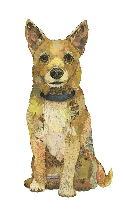 Her Dallas studio is chockfull with boxes of found and collected objects from literally everywhere. She has rescued trash out of a muddy puddle, and countless objects on long walks with her husband and dogs. In fact, she was almost arrested in front of the Supreme Court building in Washington DC when a piece of peeling paint on a public trash can caught her eye. A scary swarm of armed security officers quickly surrounded her on bicycles, demanding she hand over the chunk of paint. And Brenda's favorite haunt is in Paris where she finds hand lettered antique documents and paper ephemera. She defines collaging as painting with paper and coaxes this chaotic medium into an intriguing work of art using her distinct style of color, pattern, and texture. Brenda holds a degree in Interior Design from TCU and has studied painting and drawing at SMU extensively under Mary Vernon and Barnaby Fitzgerald. Brenda is a native Texan and she lives in Dallas, Texas with her husband Bill and has two adult children. Just to note: Prints are available of all of Brenda’s original works. The print options are below the originals.