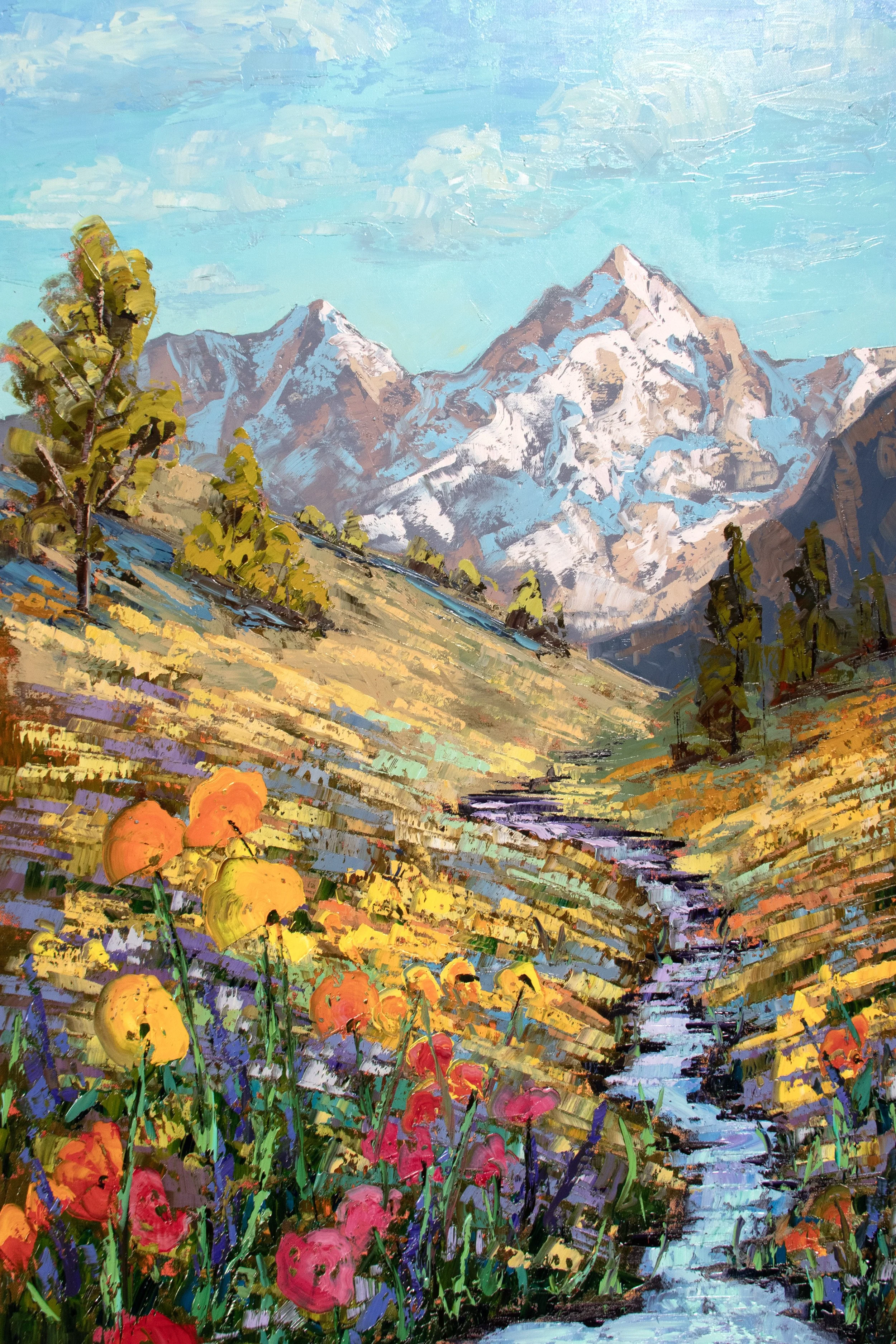 The mountains and canyons of the western frontier have long tugged at Joe McKay’s heart and imagination. Family vacations out West as a kid gave way to a lifelong passion for rugged landscapes across Colorado, Montana, New Mexico, Utah, and Wyoming. An avid outdoorsman, Joe travels the backcountry in search of inspiration. His expressive, energetic, and balanced creations evolve most often from preliminary work painted on location. An animating play of light and shadow distinguish his finished paintings. (Read more below)