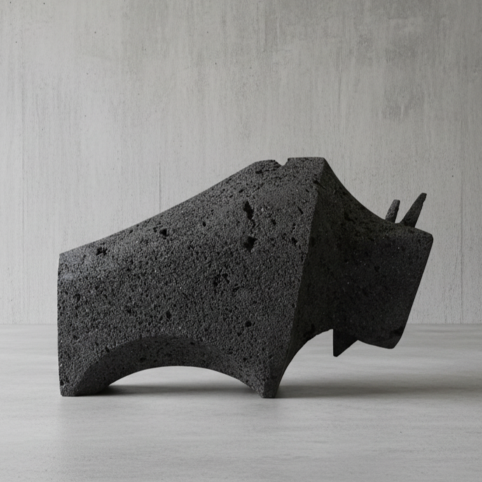 Working with materials such as black lava rock from Popocatépetl, pink and white stone, and bronze, he merges raw texture with refined geometry. His practice reflects both his Mexican heritage and a modern architectural sensibility, drawing inspiration from Isamu Noguchi, Eduardo Chillida, Pedro Reyes, Tadao Ando, and Frank Lloyd Wright.