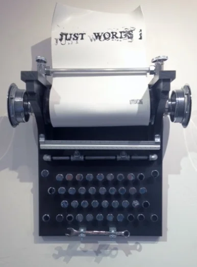 Known for his photo-realist paintings, Roderick Stevens has recently created a body of mixed media, found object wall hangings. Using a variety of found objects, from nails to pluming parts, Stevens creates dynamic interpretations of memorable icons.
